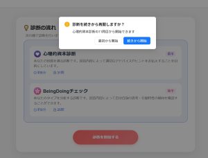 ③心理的資本診断の設問がおわると続けてBeingDoingチェックのページへ遷移します