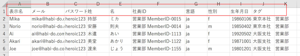 ※複数人をまとめて登録する時や、あらかじめユーザーだけを登録しておきたいときはこちらの方法で登録すると便利です。この登録方法はユーザーにメールが通知されないため、別でメールをする必要があります。(メール一括送信)