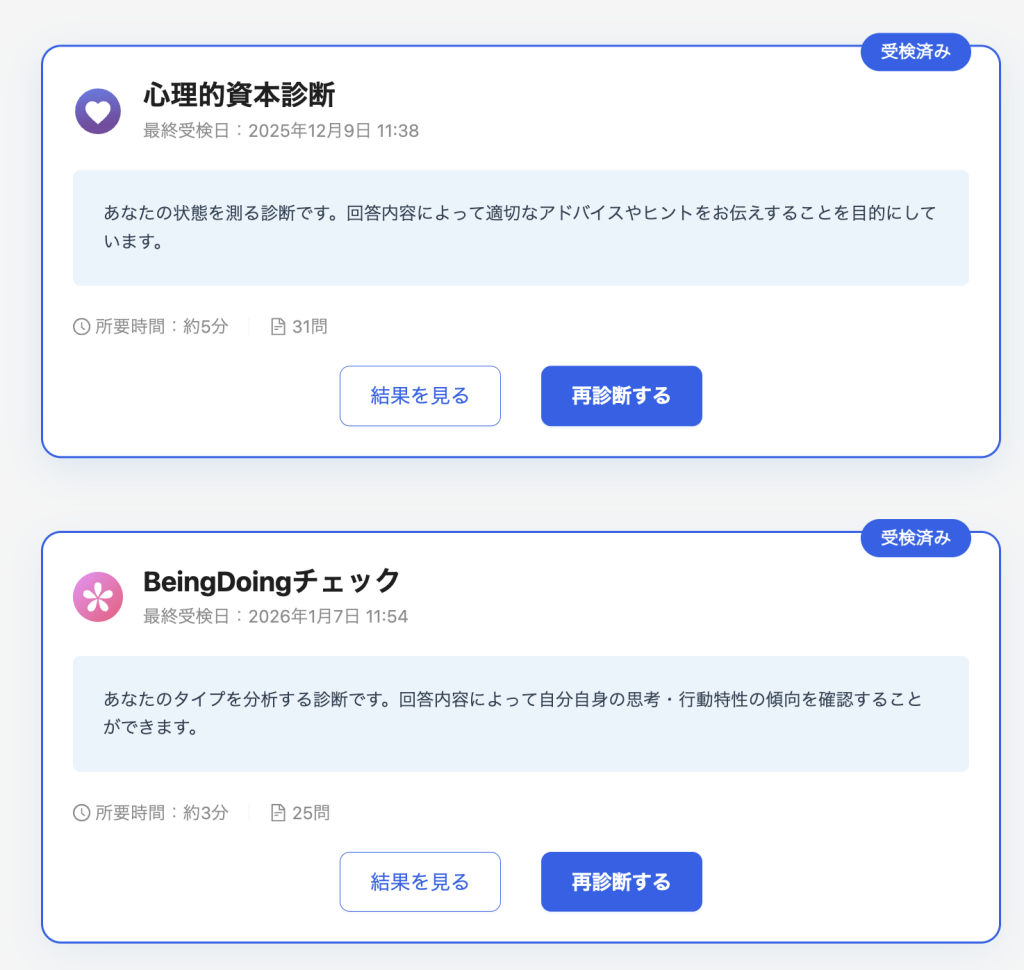 ※BeingDoingチェックは常に最新の診断結果が表示されます。