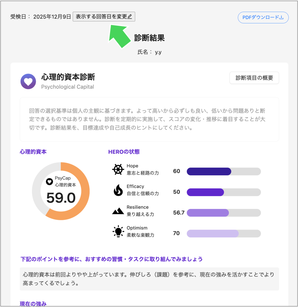 ここでは、心理的資本診断の結果を見る方法についてご案内します。